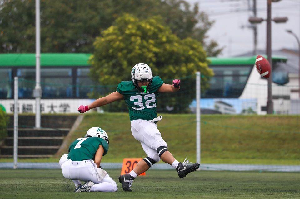 第3節は横浜市立大学との対戦、3連勝をかけた試合でした。 前半(1Q,2Q)は2度のタッチダウン、フィールドゴールにより14点を加点し、リードします。 後半(3Q,4Q)タッチダウンをされ6点の得点を許します。しかし、タッチダウンとフィールドゴールによりさらに7点を追加し、試合終了。3連勝となりました。