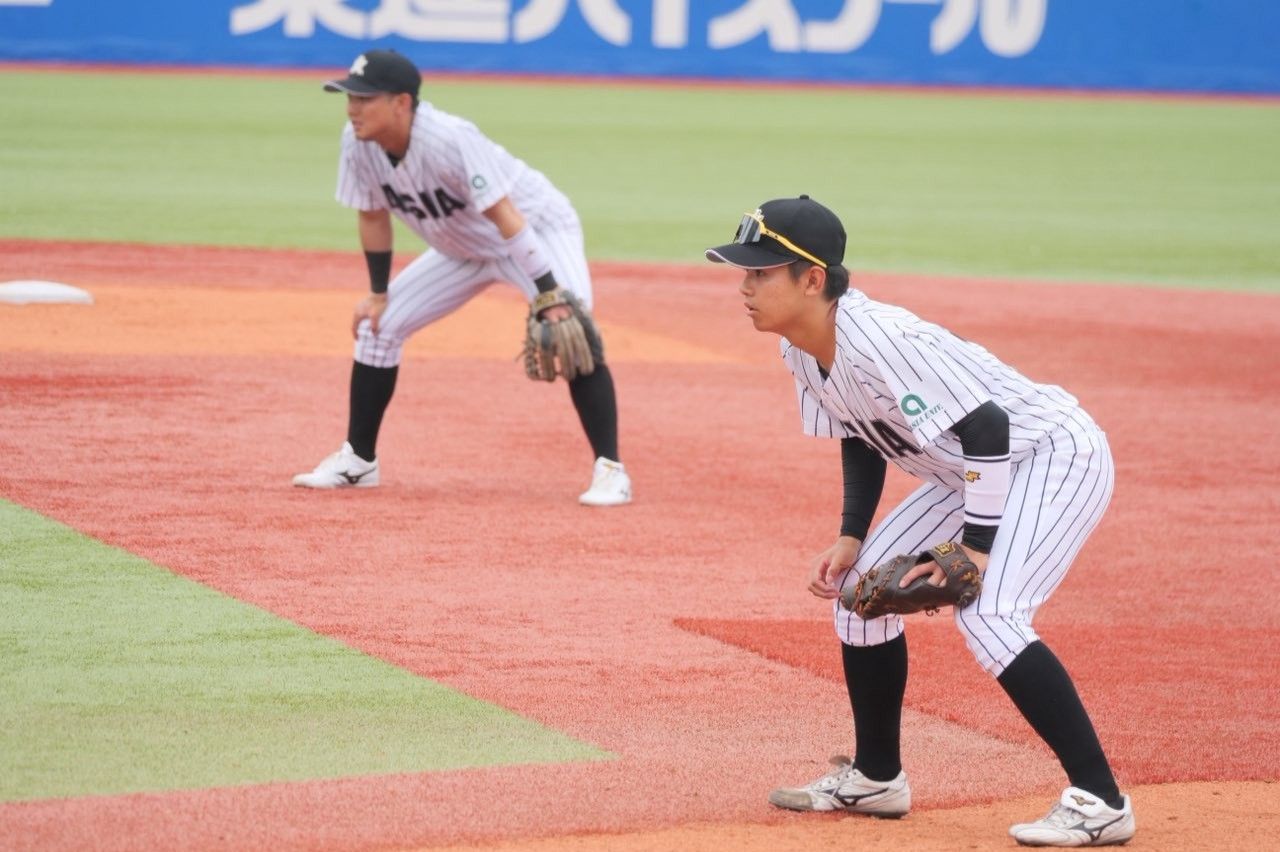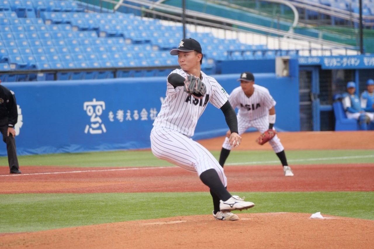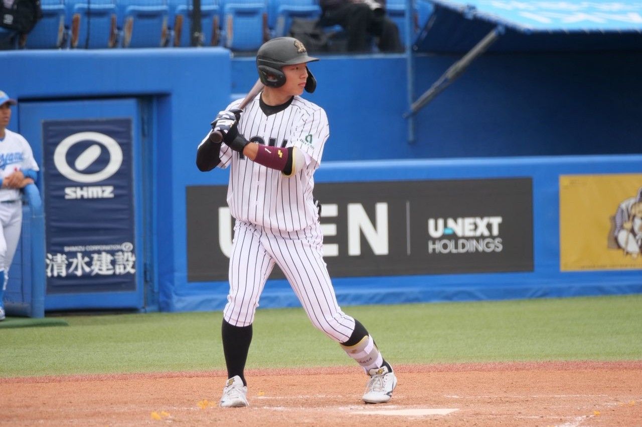 試合は初回に2死満塁のピンチから走者一掃の3点タイムリーツーベースを浴びて先制を許すと、その後も失点を重ね、計10失点。打線は8回裏に主将の山里宝選手(経営4)が放ったツーランホームランの2点のみに抑えられ、2対10で敗戦となりました。